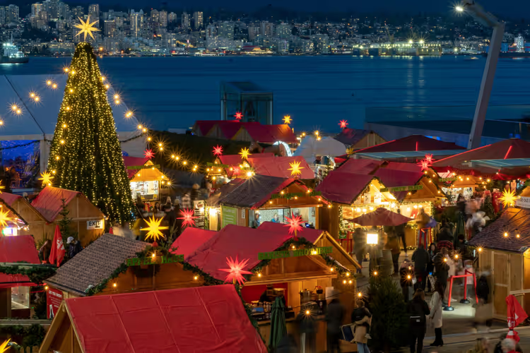 溫哥華的聖誕活動豐富到讓你玩不過來:免費的拉法基燈光秀、充滿煙火氣的造船廠聖誕市集,都是必逛打卡點。