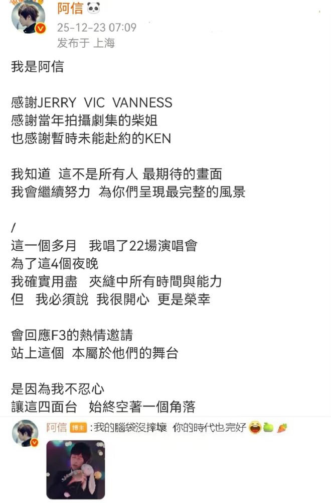 又是内涵阿信假唱,又是说五月天所属公司相信音乐勾结黄牛,说自己已经去相关部门配合调查了,怎么恨成这样?- 新闻来源于其它媒体,内容不代表本站立场!