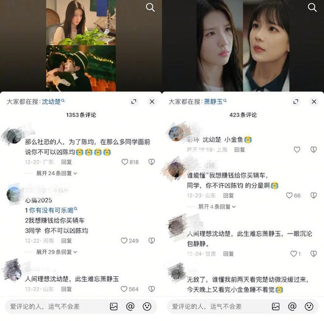 壹個是紅白玫瑰,壹個是BE美學,顯然都比大團圓更令人放不下、更產生討論欲,從而推翻“沉默的男性受眾”定律。