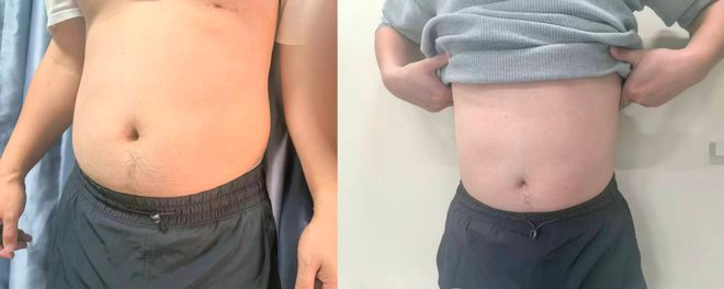 老赵是属于那种典型的全身看着不咋胖但肚子大的人,那这次变化最大就是肚子——之前鼓鼓的,现在肉眼可见“收缩”了一圈。