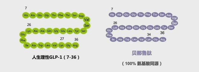 贝那鲁肽是目前唯一100%全人源的GLP-1类药物,其结构与人自身分泌的GLP-1完全一致,因此身体接受度高,副反应发生率低,即使出现也较为轻微。