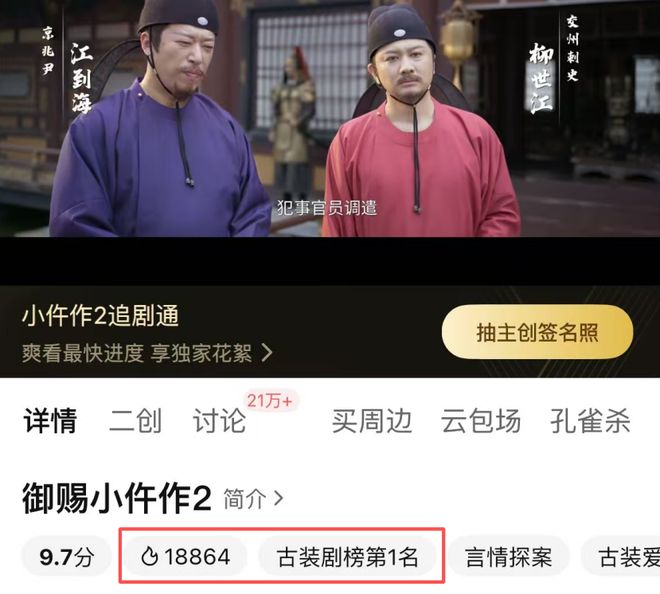 如今第贰部播出,成績果然沒讓人失望,僅播壹晚熱度破18000,並榮登平台榜單第壹,展現出了“劇王”潛質,這下我徹底放心了!