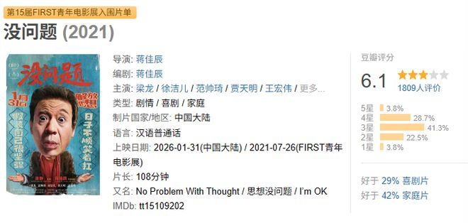 梁龍主演的壹部東北喜劇,豆瓣評分6.1分,感覺也是有點難了。