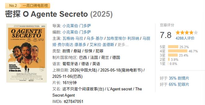 又壹部來自巴西的熱門片,也是今年頒獎季的大熱影片,前幾天的奧斯卡也剛拿到4項提名,而且還是之前戛納的影帝和最佳導演獎。
