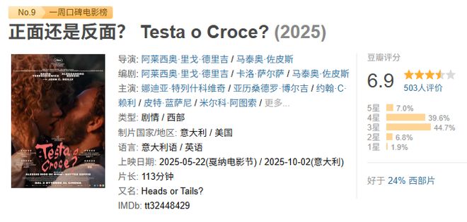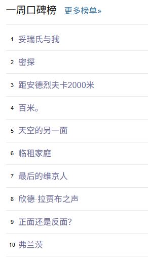 同時,壹周豆瓣口碑榜也是可以了解下的。我們壹起來看,這壹周,又有哪些新的影片上榜吧。