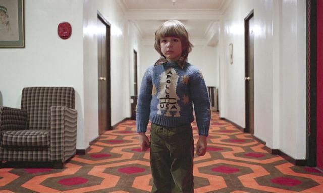 當然,除了歷史的角度,《第237號房間》中也不乏壹些天馬行空的陰謀論。比如,庫布裡克借《閃靈》暗示自己參與了壹項不能宣之於口的政府秘密計劃——偽造登月的影像制作,包括他將史蒂芬·金原作裡的217號房間改為237號、丹尼身穿的阿波羅11號圖案的毛衣、鑰匙門牌上大寫字母組成的“MOON”與飛船發射場類似的六邊形地毯圖案等,都是庫布裡克刻意隱藏其中、有待觀眾破解的線索。