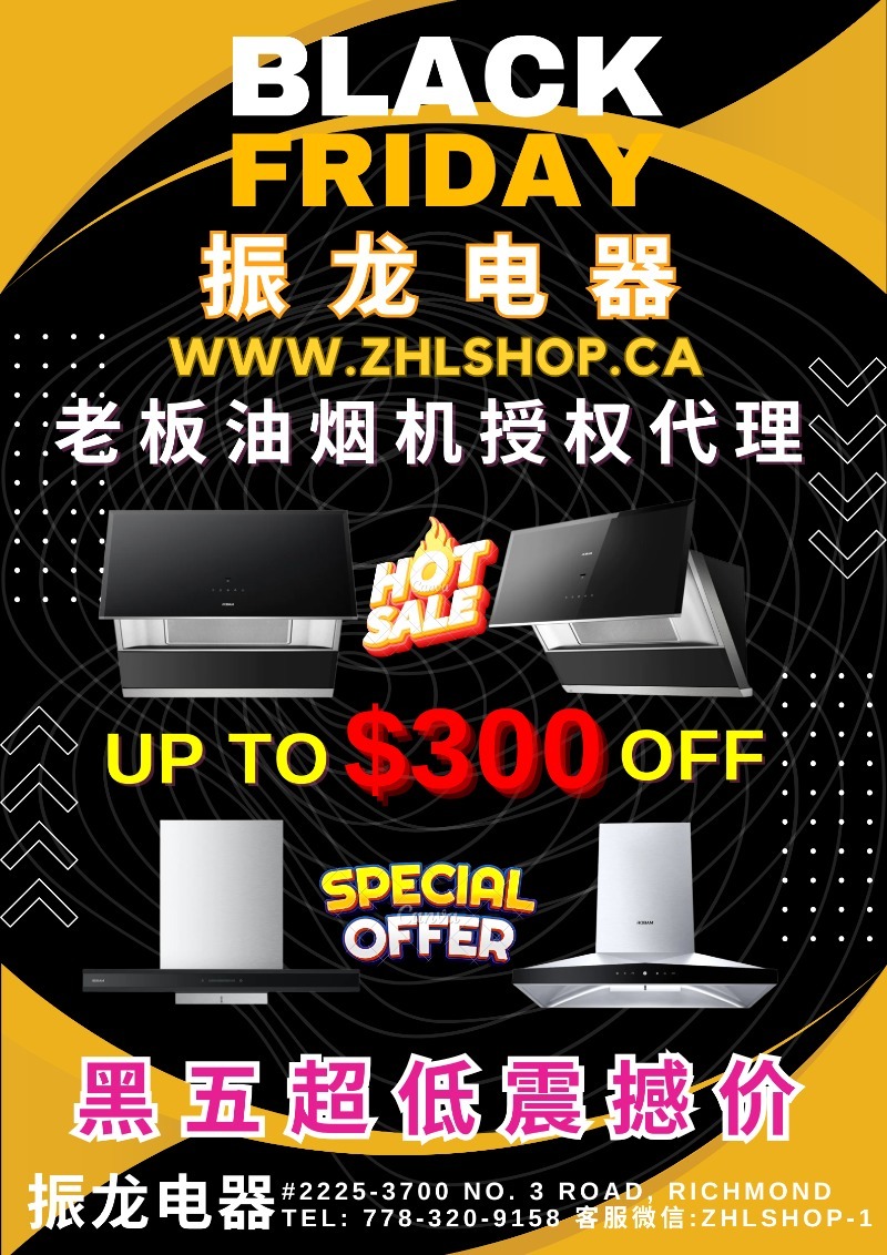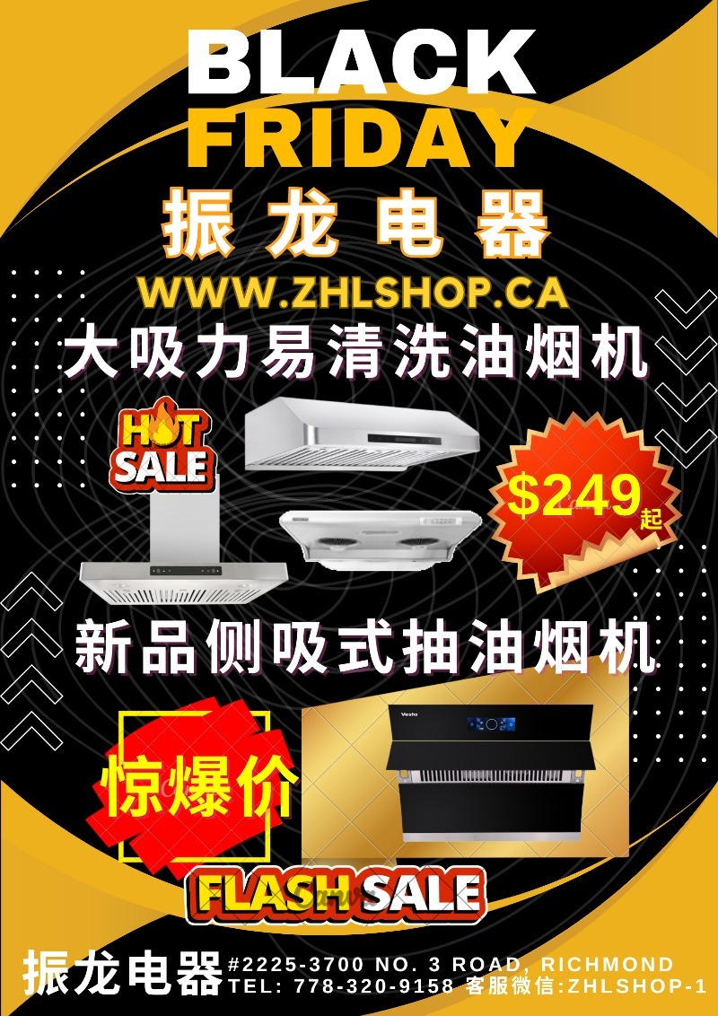 大吸力静音抽油烟机(最新挥手侧吸式、蒸汽洗、自动清洗等),震撼价最高直减$200