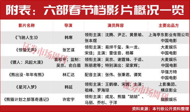 基于目前电影储备情况,多数卖方机构力挺马年春节档,比如券商中信建投强调看好2026年春节档票房水平。究其原因,其强调:“近两年春节档票房持续创新高。我们认为主要原因在于一方面近年春节假期时间较往年更长,2024年和2025年的春节假期都是8天,长于往年的7天;另一方面头部电影更为集中,春节档在全年的重要性一再提升,推动出品公司更倾向将全年最头部的电影定档在春节。”
