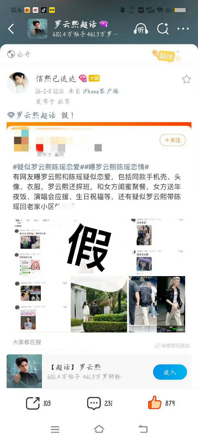 但工作室的澄清,直接把剧本撕了个粉碎。声明指出,所谓“同款”手机壳使用时间相差两三年,根本对不上;微信头像是黑粉用AI技术伪造的“黑图”;撞衫的私服多为品牌推广合作款,半个娱乐圈的艺人都穿过。至于探班和年夜饭,那是《水龙吟》剧组集体的热闹;演唱会应援,则是同公司艺人之间的常规支持。最关键的“同回小区”背影照,实为几年前罗云熙帮同事看房时的正常社交合影,且陈瑶早在2023年就被拍到与圈外男友挽手逛超市、疑似同居,感情状态稳定。
