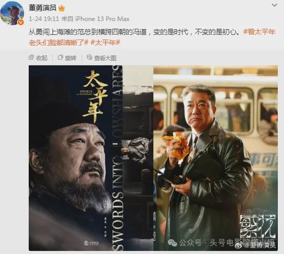 就连董勇自己,也在网上晒出剧中造型,写道:“从勇闯上海滩的范总到横跨四朝的冯道,变的是时代,不变的是初心”。