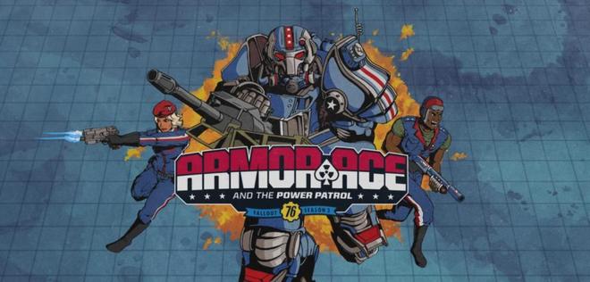 比如,在《辐射76》“装甲王牌”赛季的更新中,制作组虚构了一部战前动画片《装甲王牌与动力巡逻队》。这部儿童向动画,乍看和我们看的超级英雄电影没有太大区别,但目的却是为了美化战争,介绍昭昭天命——“培养前线耗材,要从娃娃抓起”。