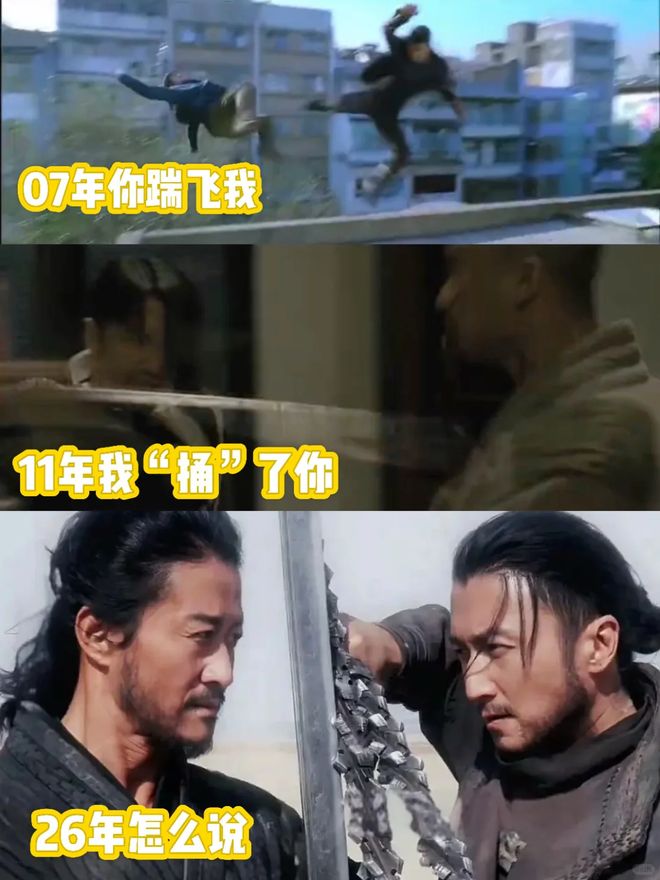 07年《男兒本色》的壹腳之仇,在《新少林寺》裡捅了拾幾刀還不解氣,現在在《鏢人》裡又來了。