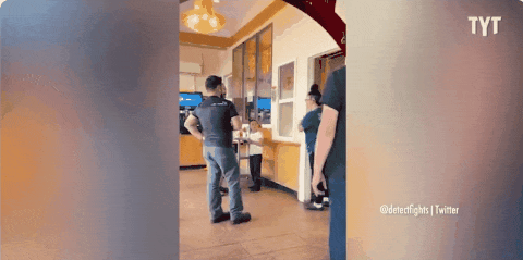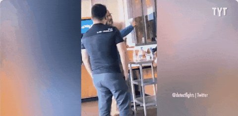 视频中显示,两人争吵越来越激烈,周围的顾客终于看不下去了,对着男子大喊,"闭嘴,先生!闭嘴!”