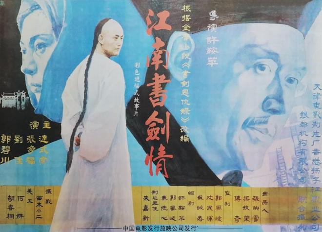 说起这部遵照金庸小说《书剑恩仇录》改编的上下集银幕巨制,却有不少故事。遥想上世纪80年代初,金庸小说基本通过大量的盗版书籍、小报杂志等媒介传播到大陆,掀起了一股武侠热,而正式引进却与天津有缘:一是小说《书剑恩仇录》被授权天津百花文艺出版社出版,再是同名电影由天津电影制片厂投资拍摄。当时,天津电影制片厂正由科教片厂转型为故事片厂,意欲投拍炙手可热的武侠片来打一场经济上的“翻身仗”,因而将目光瞄准了大红大紫的《书剑恩仇录》,并获得金庸先生的首肯。虽有政府、银行、企业等保驾护航,但影片的筹拍过程却是一波三折。1984年,刚挂牌的天津电影制片厂打算和香港一家影业公司合作,邀请因拍摄《垂帘听政》《火烧圆明园》而声名大噪的香港着名导演李翰祥执导,然而筹备当中李翰祥与影业公司理念不合,发生矛盾,天津方面只好改请刚因执导《投奔怒海》而荣膺香港电影金像奖的许鞍华;起初金庸应允亲自撰写剧本,可是后来拿到的“剧本”只是故事大纲,没辙,赶紧另起炉灶搭建创作班子,也就成了报纸广告里的编剧署名“许鞍华、郭凤岐、秦洗心”;剧组原想邀请“流量小生”郑少秋饰演乾隆皇帝,他曾参演过电视剧版《书剑恩仇录》里的陈家洛,怎奈何巨额片酬吓退了天津电影制片厂,转而请出内地“戏骨”达式常……几经折腾,1986年3月剧组在苏州开机,跑遍了江苏、浙江、上海、新疆、山西、河北、北京、天津等地,于苏州拙政园、杭州六和塔、承德避暑山庄、北京故宫等古迹实景拍摄,1987年初春时节在天津红桥区杀青。内地自然风光的巧妙叠现,拳拳到肉的武打动作设计,较之当时纯港式武侠电影大异其趣,倍添诸多看点。进入影院放映前,由于片时所限,只能分为上集《江南书剑情》和下集《戈壁恩仇录》两部,前赴后继登陆银幕。