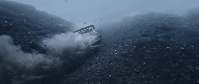 有壹場戲讓人印象特別深,引擎蓋突然掀起遮擋住90%的視線,張馳只能彎腰透過儀表台的狹窄縫隙勉強看路。後來才知道,這竟然是對2017年加泰羅尼亞拉力賽曾發生的真實事件的致敬。