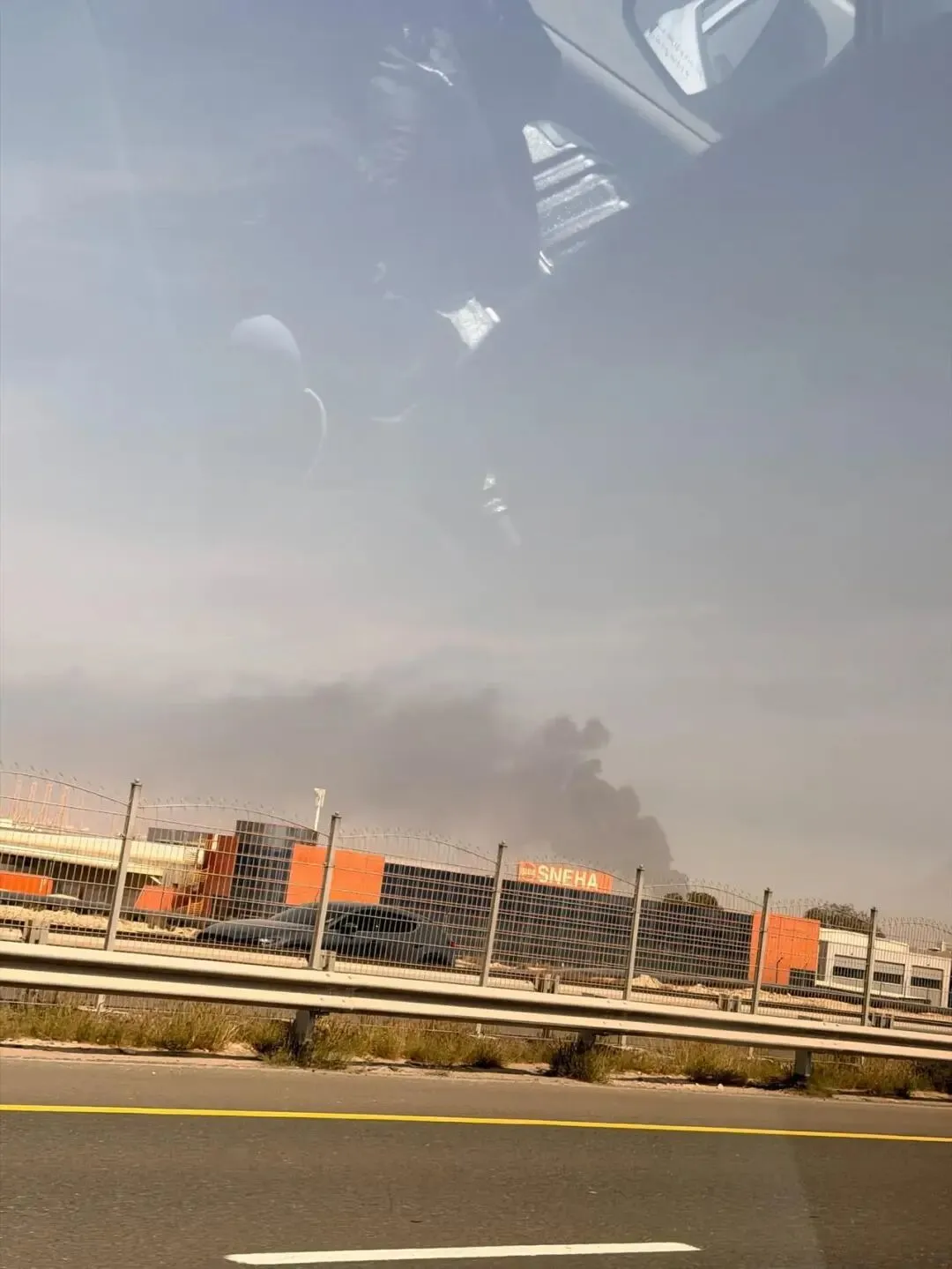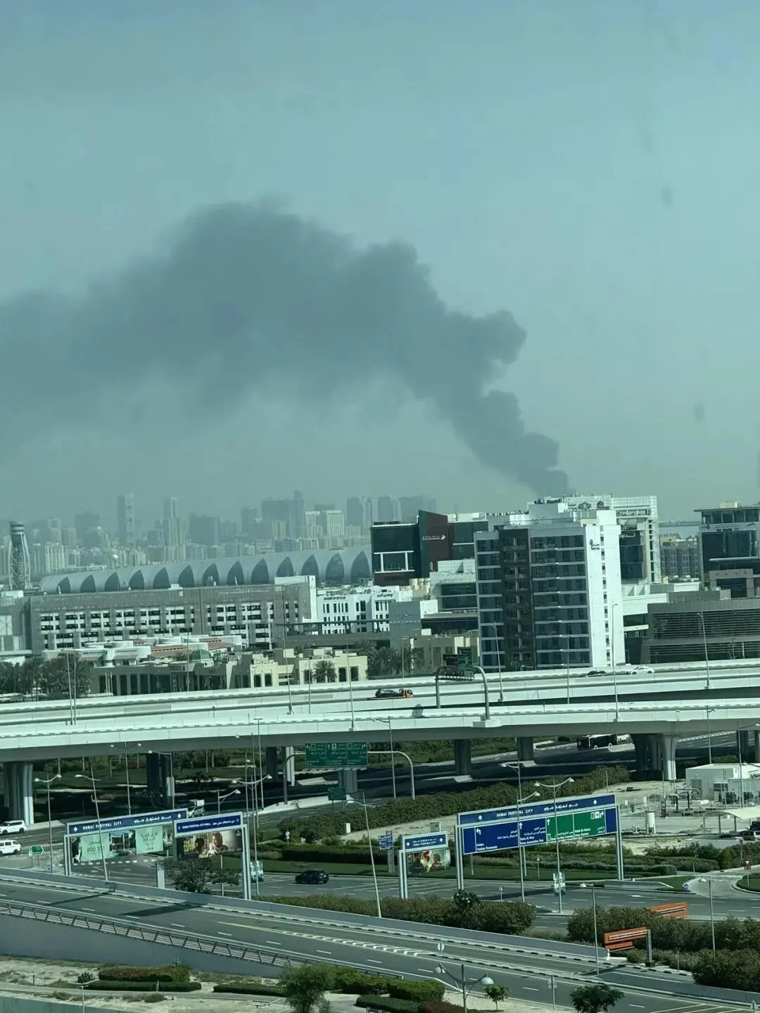 陳婧和同伴路過迪拜棕櫚島,看到不遠處冒起黑煙。受訪者供圖