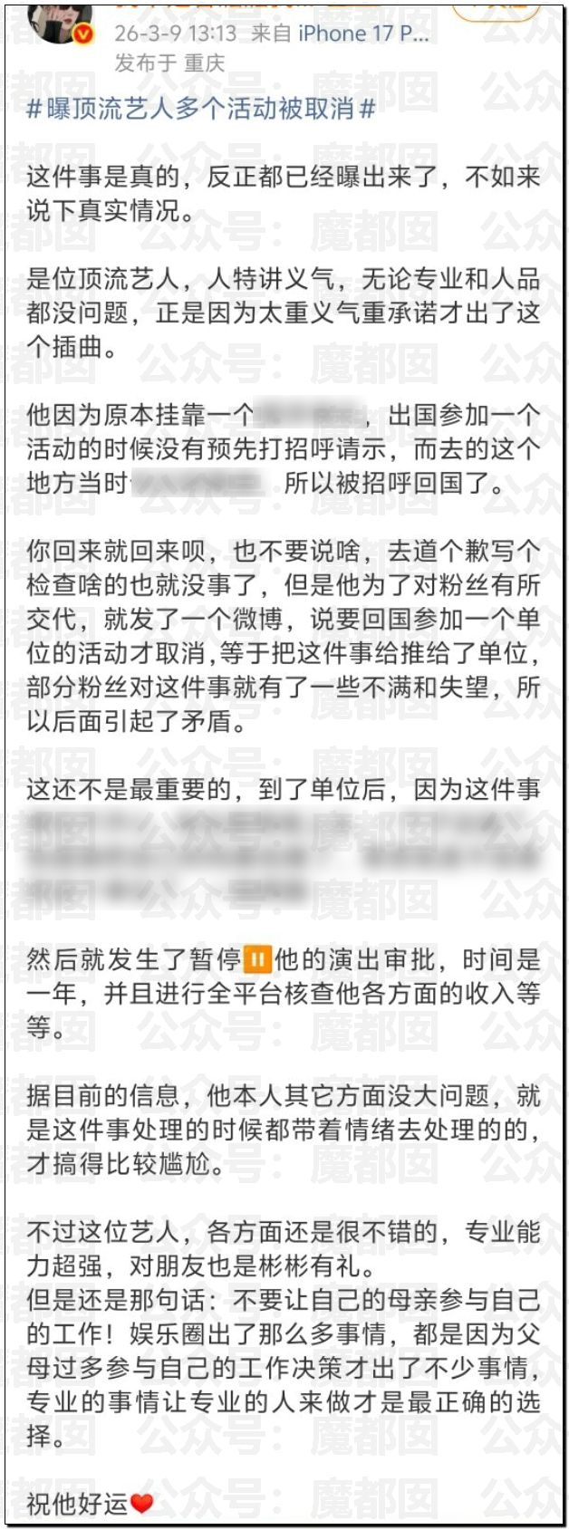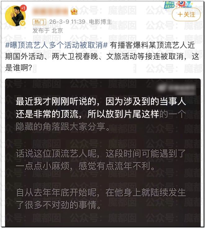 一开始是有娱乐号爆料说某顶流艺人要完了。