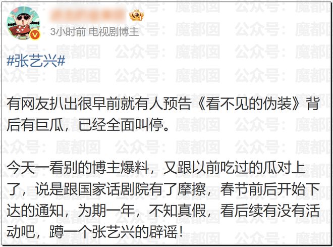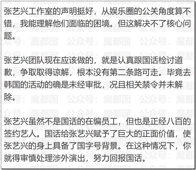 然后当日的舆论导向全是sm公司故意不让张艺兴上台什么的,粉丝各种维权和委屈,但是根据后续爆料和张艺兴自己的微博,实际上是张艺兴出国演出,特别是去棒子国演出可能没有按照规定走流程什么的,疑似被召回了。