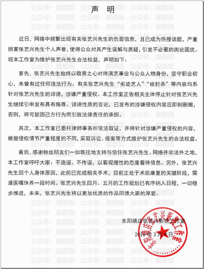 果然,随即,张艺兴方面在深夜紧急发了声明: