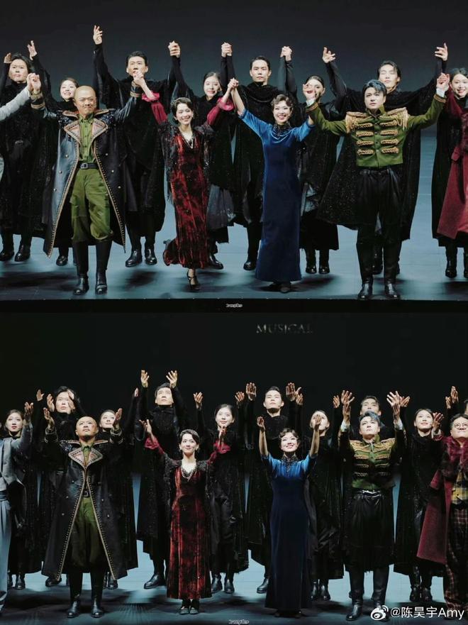 音乐剧《风声》谢幕,前排着红裙者为陈昊宇