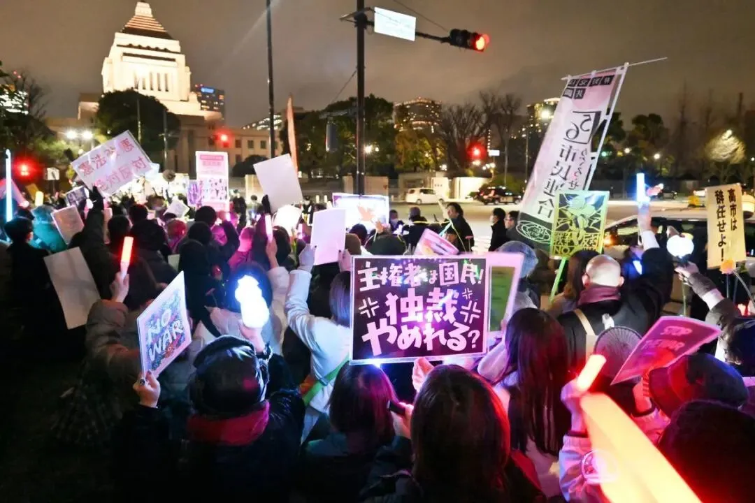 3月10日深夜,东京国会前,约八千名日本(专题)市民冒雨聚集在一起。他们挥舞着彩色荧光棒,高喊“高市首相,请遵守宪法”“反对战争”。这一幕,发生在日本,却让很多人感到一种久违的历史性压迫感。