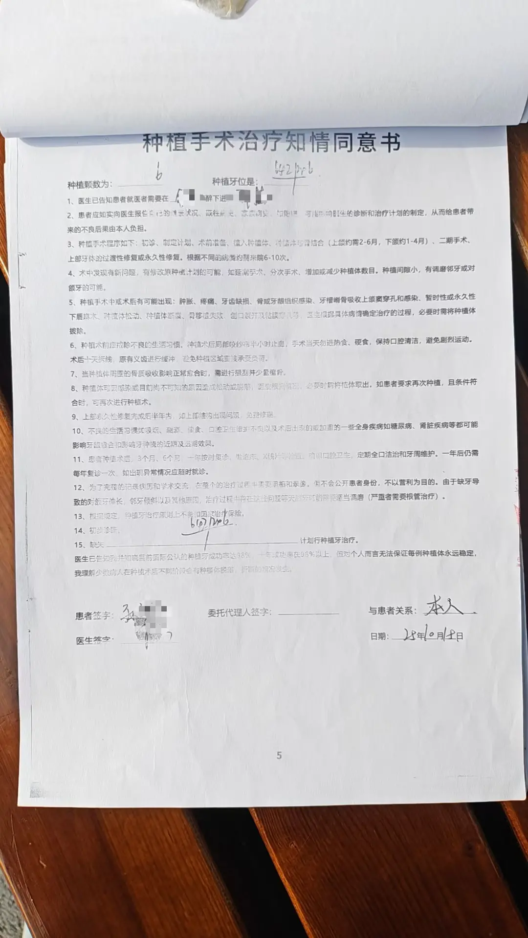 ▲孙先生本人签署的种植手术治疗知情同意书