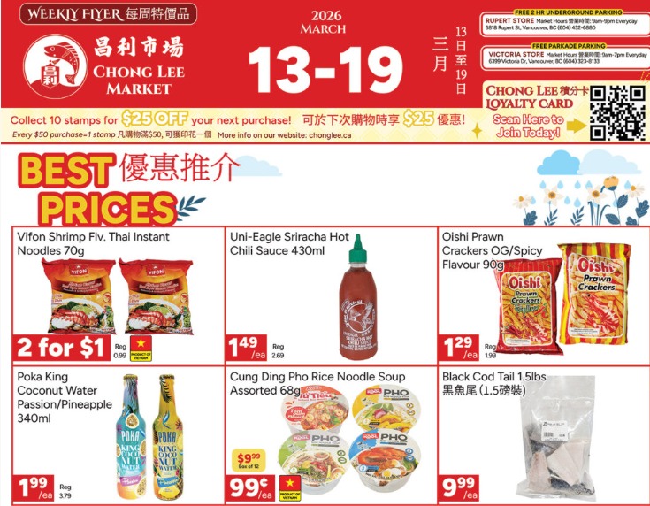 中國世界超級市場(RICE WORLD SUPERMARKE)列治文分店-- 本周特價:3月13日至3月19日