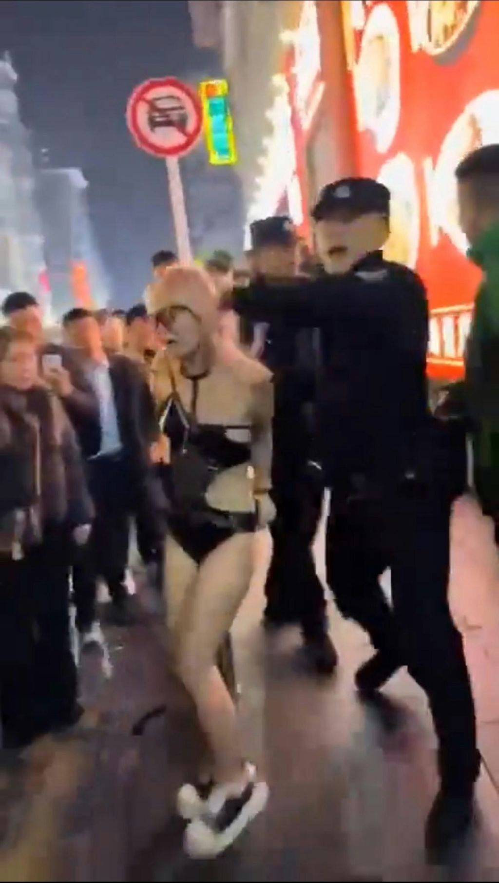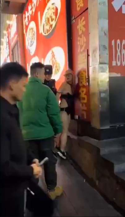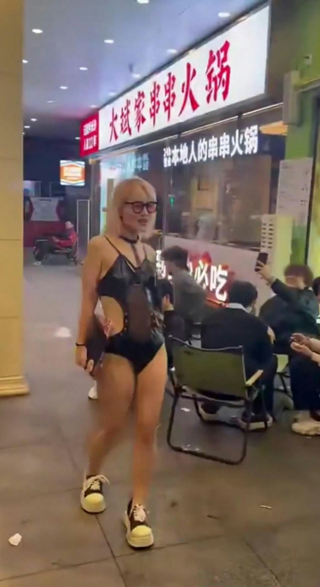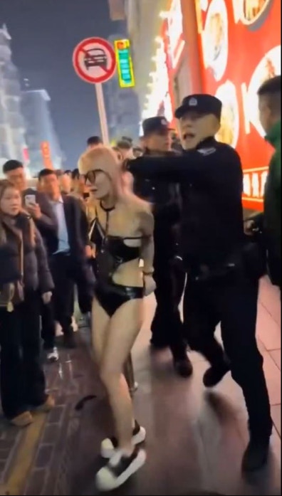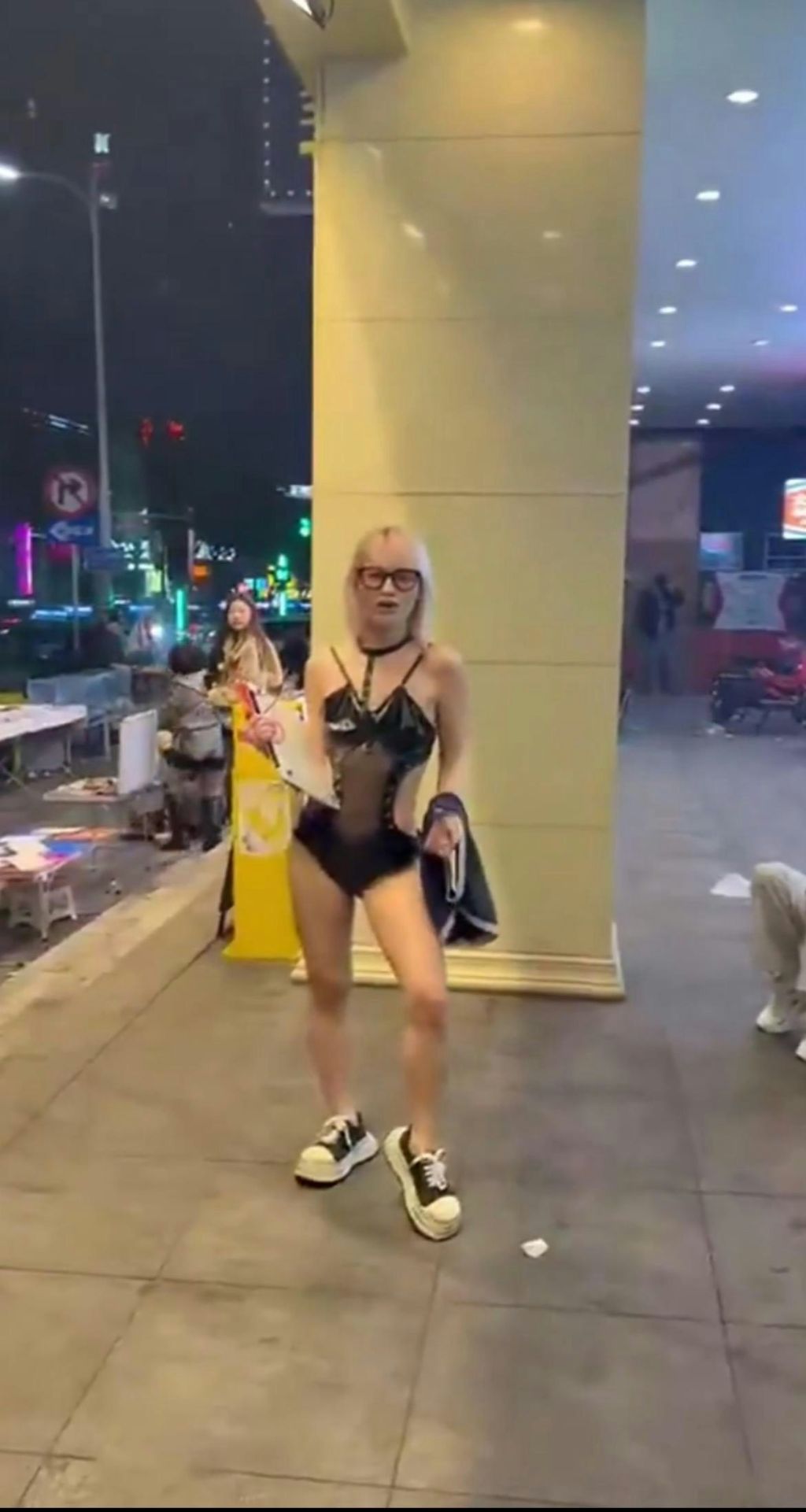 據悉,事發地點位於湖南省長沙市最繁華的解放西路。據現場目擊者上傳至社交媒體的視頻顯示,壹開始,壹名蓄金色短發、身穿黑色性感皮質內衣及超短褲的年輕女子,在人潮擁擠的街道上旁若無人地游蕩。
