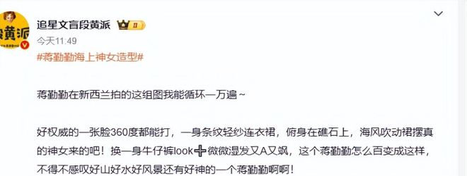 壹身條紋輕紗連衣裙靠在礁石上,海風掀起裙擺吹亂發絲,清冷又溫柔,連每根發絲都帶著氛圍感,隨手壹截都能直接當手機壁紙。轉頭換了利落的牛仔褲,濕發貼在臉頰,眉眼間全是隨性的酷感,又新西蘭的山海本來就像畫壹樣,可在蔣勤勤面前,再好的風景都成了陪襯,美人自帶的光芒根本藏不住。這種不刻意的松弛感,比多少磨皮到失真的精修大片都更打動人。生圖裡的她皮膚緊致伍官精致,只是比年輕時多了幾分歲月沉澱的韻味,這種由內而外的美,在浮躁的娛樂圈真的太難得。