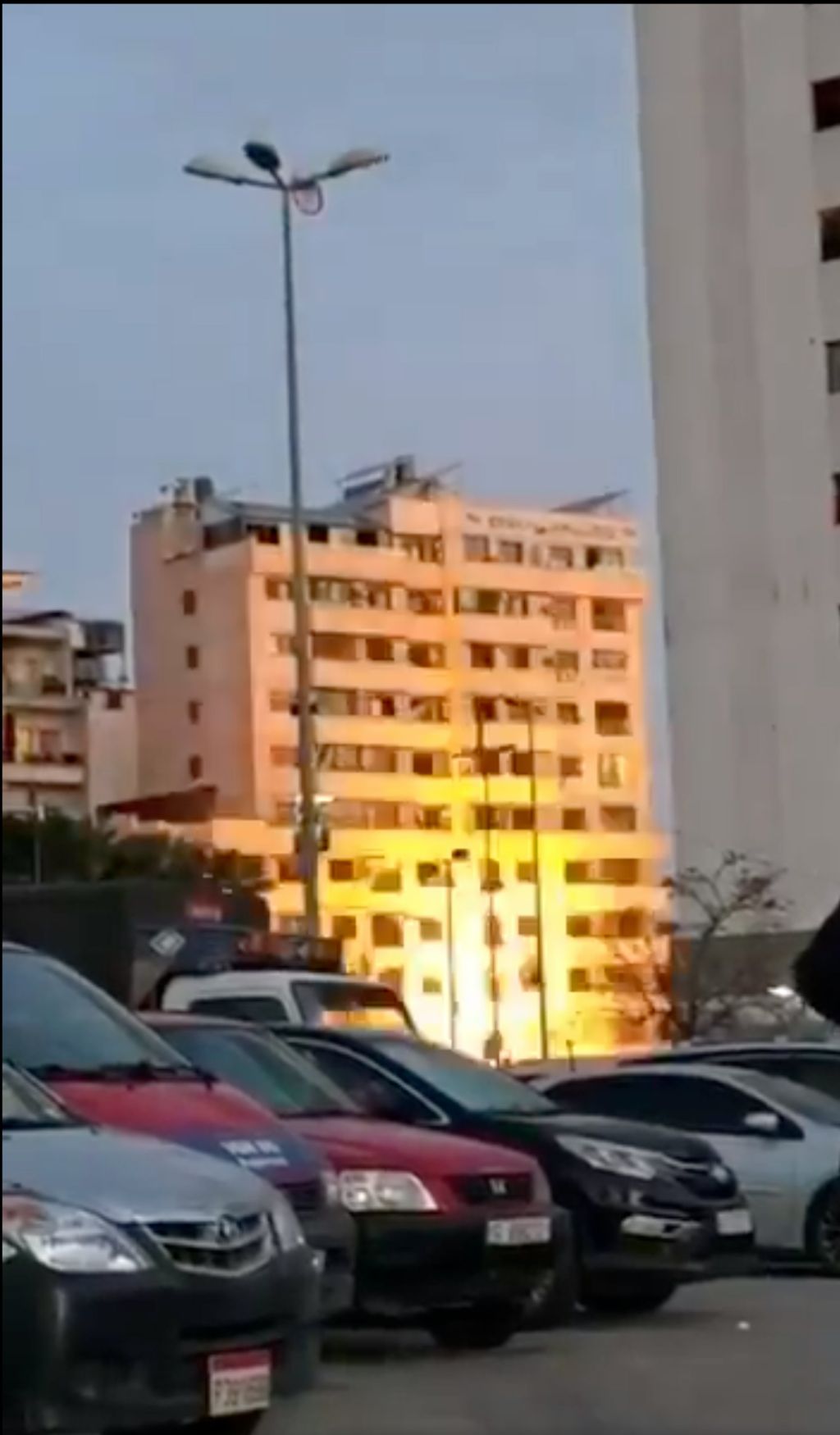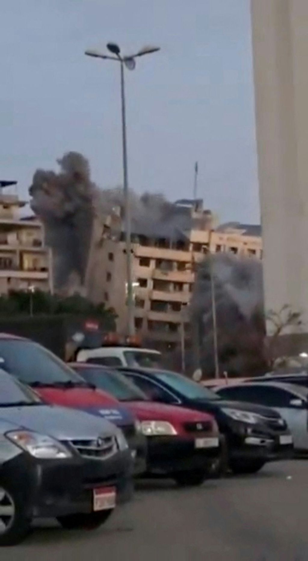 黎巴嫩首都贝鲁特一栋建筑物被袭后瞬间倒塌: