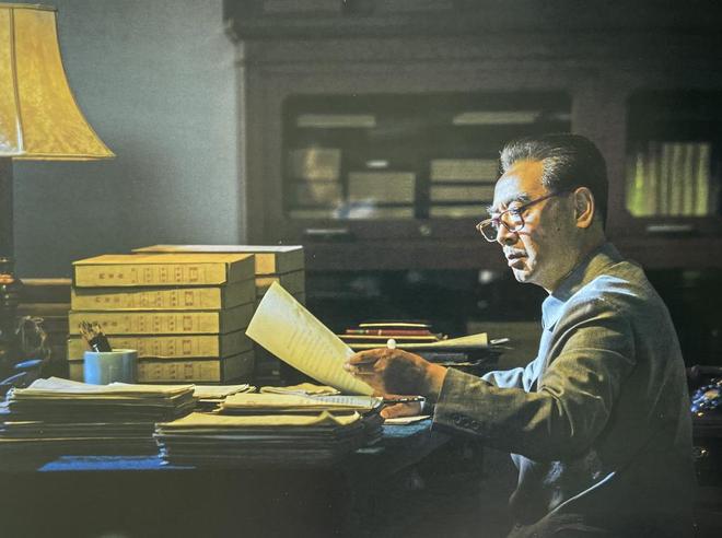 同时,我们在拍这场戏的时候,考虑到这里面其实也有周总理的智慧。当年他和毛主席以及中央领导们住在西柏坡,各自的屋舍离得都不远,半夜三更,发那么大火,高声嚷嚷,料到了主席肯定也能听见。片中也展现了,主席推门进屋后,捡拾起总理丢在地上的电报,反而安慰大家不要灰心丧气。这就体现了周恩来的责任感和智慧。