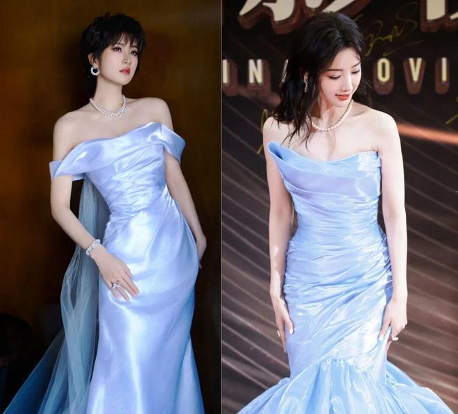 既然范某都已经穿了,可见类似效果的面料在红毯并不罕见。我随随便便以图搜图以下,就搜到2025年6月毛晓彤穿过颜色都很相似的礼服,说明这完全就不是一个稀罕玩意儿。