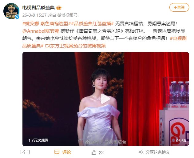(3月9日活动官方微博对姚安娜服装的描述)