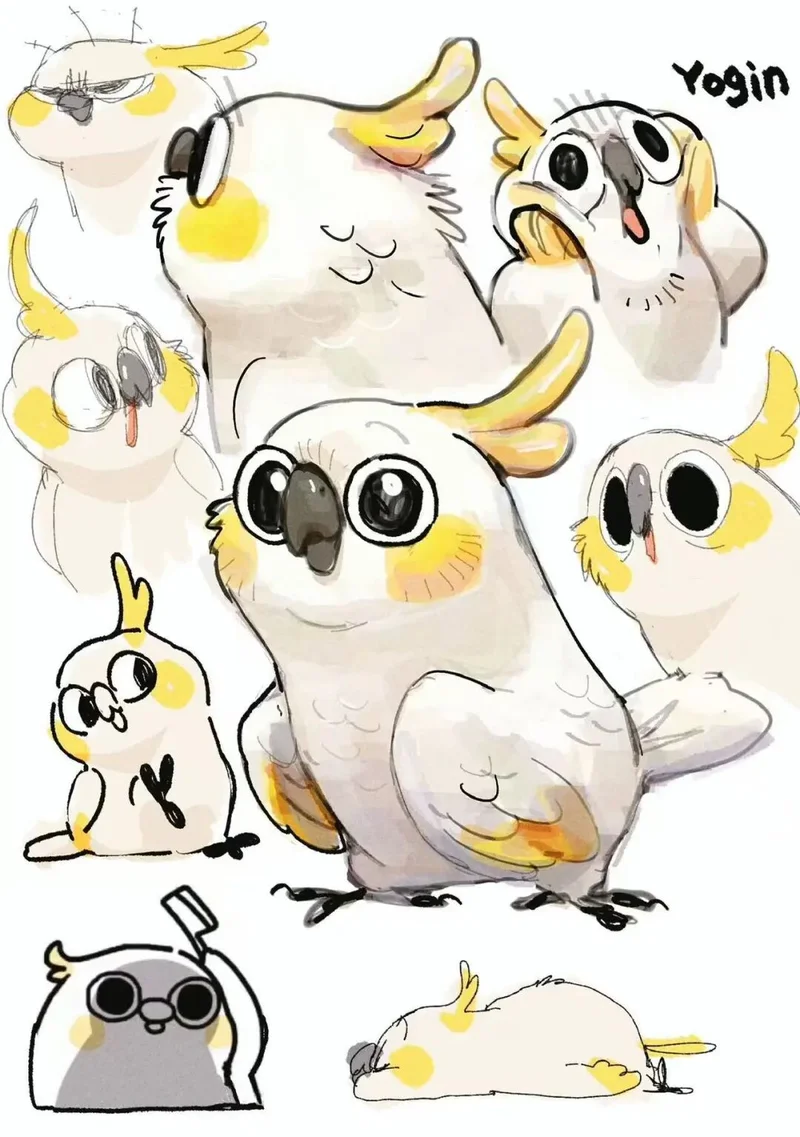 推特上的第壹個“爆款”是壹只小鳥,表情靈動,獲得了7000多贊。後來她也畫了很多不同的鳥的形象,她喜歡這種生物,會經常去不同的養鳥朋友家“吸鳥”。