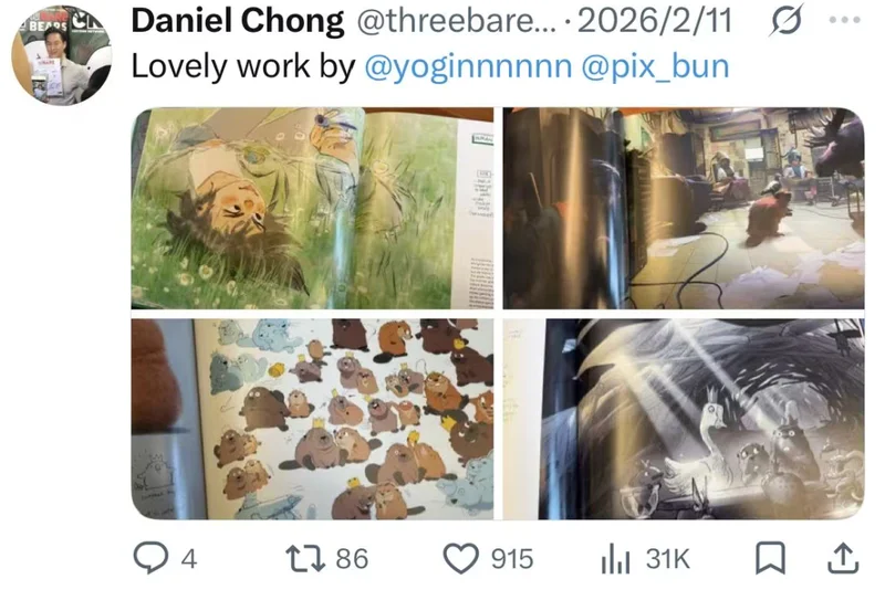 其實這個“天降好事”並不是毫無預兆。這份offer的發起人——《河狸變身計劃》的導演丹尼爾·鍾早就在推特上和她建立過聯系。他很喜歡她畫的卡通形象設計圖,就私信她,希望能合作壹次。
