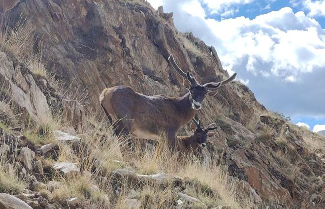 国家一级保护动物白唇鹿时常出现于华能拉萨南北山绿化工程区