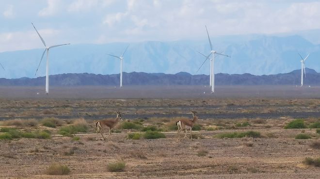 中国节能所属风电公司在内蒙古、甘肃、青海、新疆等地风电场建立野生动物监测保护体系,完善巡查台账、优化巡检路线、开展植被修复,让乌鲁木齐达坂城、哈密烟墩等风电基地成为鹅喉羚、野骆驼等保护动物的宜居乐园,实现能源开发与生物多样性保护双赢。