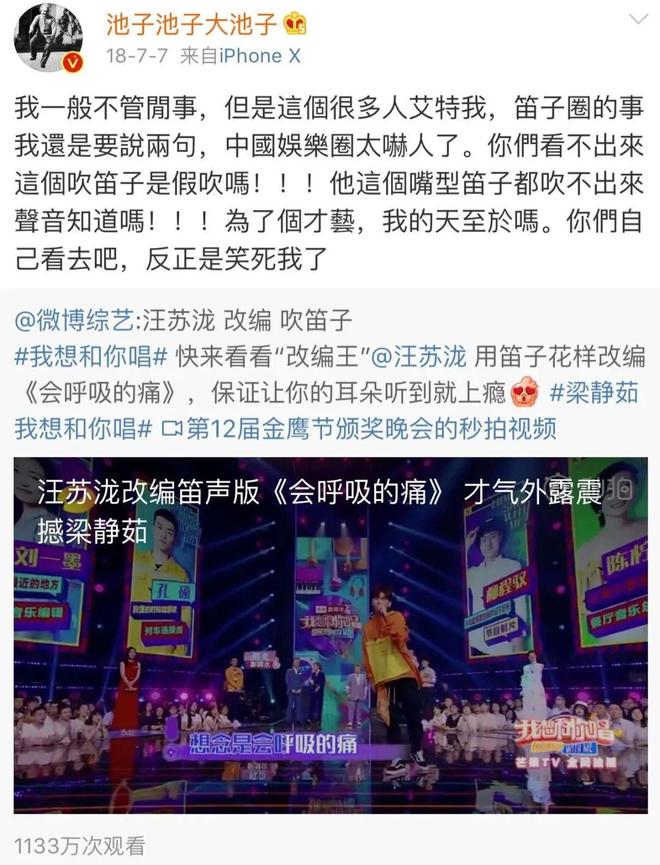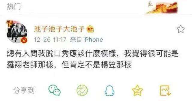 面對洶湧的批評聲和輿論鋪面而來伴隨的謾罵,池子在他的“中club”開放麥中回擊(後續他本人將表演視頻上傳至社交媒體)。