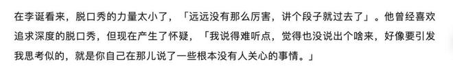 當時離開笑果專注線下的池子看了節目後銳評:“脫口秀不是楊笠那樣。”