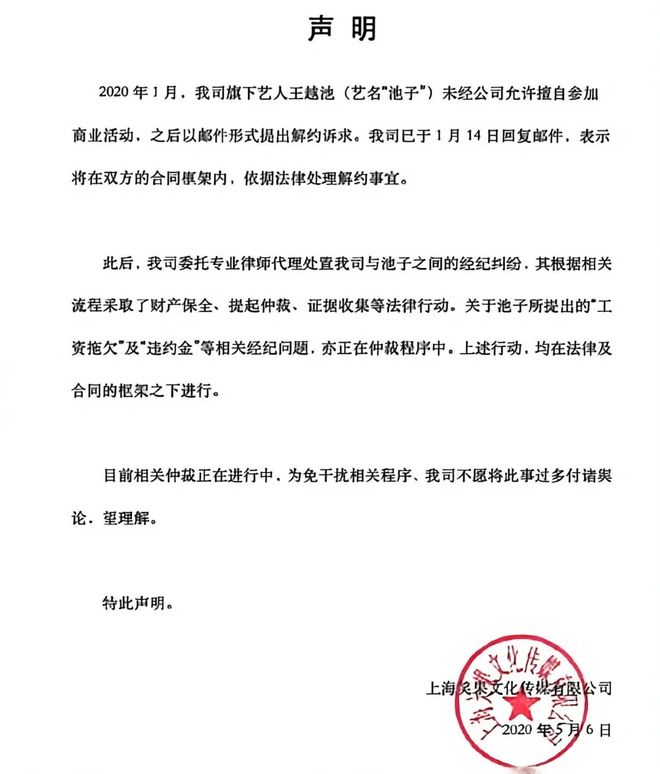 池子和萌揚文化的合約只簽了兩年,2022年末合約到期後,池子成為獨立藝人。
