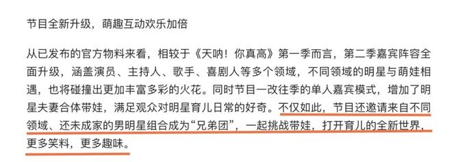 上圖截取自該節目的網絡宣發通稿,在節目上他的定位是未婚男明星,池子從未親口說過自己單身,但是處處暗示自己單身。