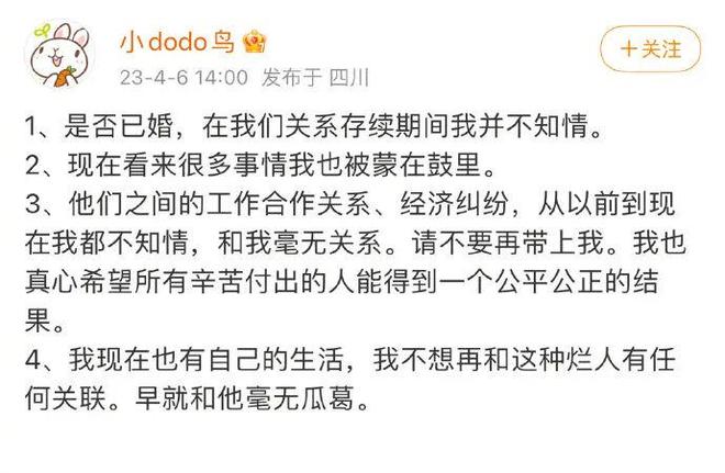 後來豆得兒發文稱,她當時對池子的婚姻狀況並不知情,並認為對方是爛人壹枚,早已沒有了聯系。