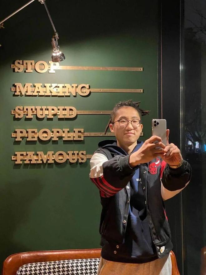 他的確有點小才華,正如他剛才那張自拍照的背景英文:stop making stupid people famous,別再讓蠢人成名了。