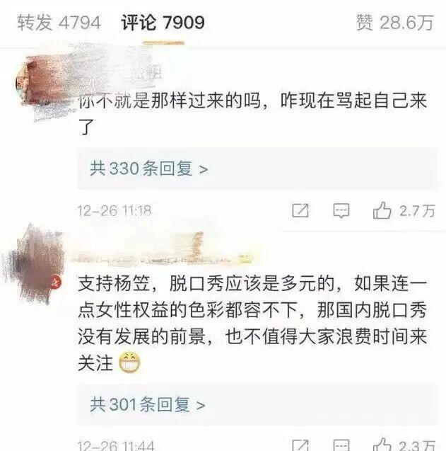 同期楊笠在《脫口秀大會》第叁季節目播出後爆紅(那麼普通又那麼自信),爭議隨之而來,年底,處於暴風眼的楊笠在《脫口秀反跨年》的表演中又引起壹輪風浪。