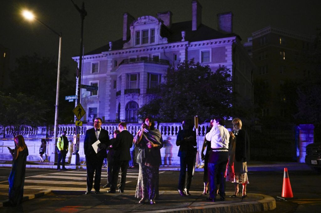 酒店周围街道的交通受到了限制。这家酒店因曾是罗纳德·里根(Ronald Reagan)遇刺地点而闻名,也经常作为世界各国领导人和华盛顿精英们会面的场所。