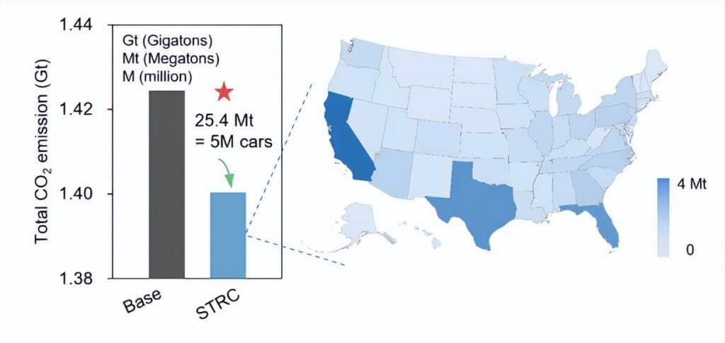 基於真實市場推演壹下:美國目前約有 2.8 億輛注冊乘用車,每年因交通運輸產生的 CO₂排放總量約為 19 億噸。如果將這項技術應用於美國所有的乘用車,每年預計可減少約 2,540 萬噸的贰氧化碳排放。這壹減排量,相當於直接從道路上消除了約 500 萬輛燃油汽車。