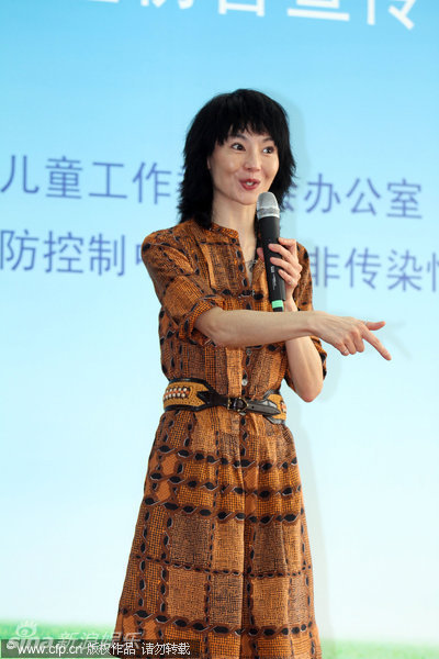5月29日,張曼玉出席預防兒童傷害活動。當天,張曼玉心情大好,全程微笑,在台上演講完後大派飛吻,不時還捂嘴大笑。開會時她還咬指賣萌,拾分可愛。圖庫供稿