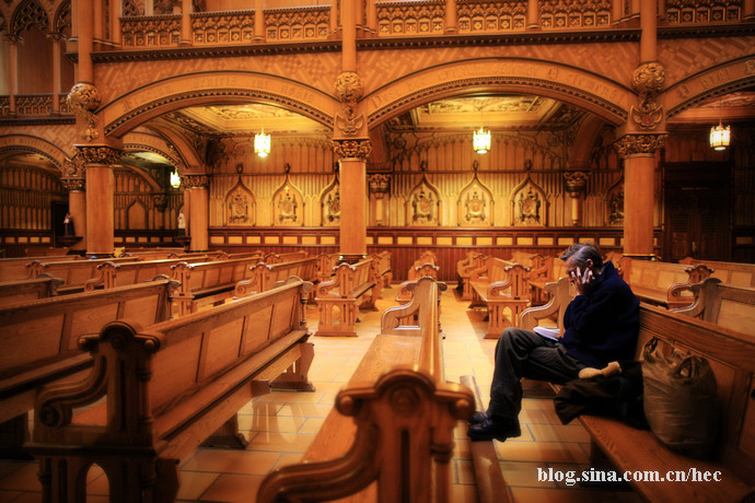 蒙特利爾聖母大教堂,昏黃的燈光,老人獨自久坐,像壹張寫滿滄桑的老照片靜靜定格。