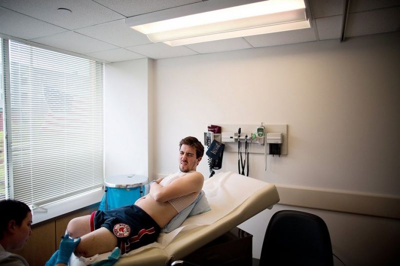 所有美國人都無法忘記波士頓“4·15”慘案,對於傑夫·鮑曼更是如此。2013年4月15日,波士頓科普裡廣場,27歲的傑夫·鮑曼站在終點線後,等待著女友艾琳·赫爾利。這是艾琳第壹次跑馬拉松,鮑曼希望能第壹時間捕捉到女友沖過終點線的身影。然而這時爆炸發生了,鮑曼失去了自己雙腿的下半部分。圖為爆炸案發生壹個月後,鮑曼在波士頓醫療中心拆線。窗外,是壹面降半旗的美國國旗,以紀念事故中的遇難者。