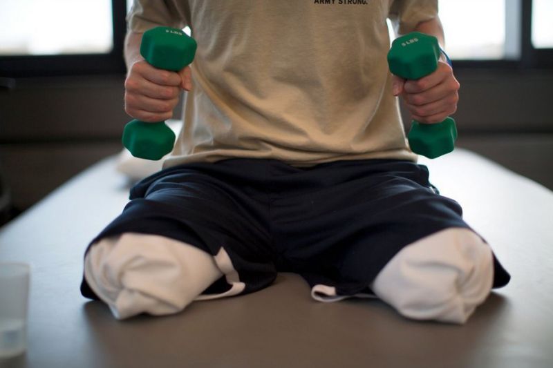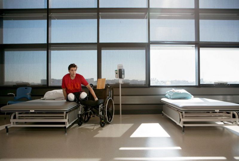 在截去小腿後不到壹個月,鮑曼就已經能不用滑板的支撐,獨自從椅子邊走到治療墊邊。
